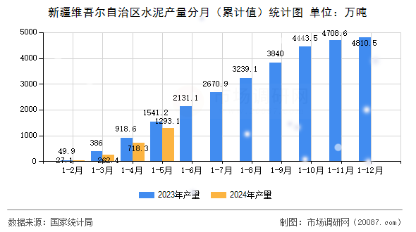 摘要:[图文] 2024年5月新疆维吾尔自治区水泥产量分析