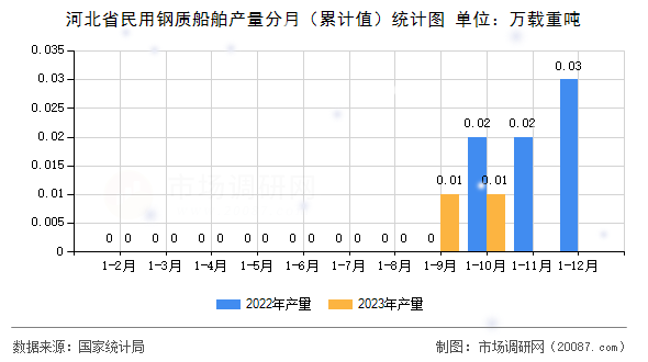 图2:河北省民用钢质船舶产量分月(累计值)统计图
